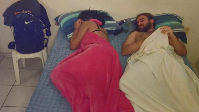 Наглый небритый негодяй дрочит на мирно спящую женушку друга, а также сдавливает яйца. Сдвинув с сонной бабы бикини, чудик стал рассматривать дырочки и мастурбировать в более ускоренном ритме. Проснувшись, телка взялась за основание пениса нахального гостя и помогла вставить пенис в сырое лоно, которое не трахали уже несколько часов. Имея чужую супругу в розочку, шалун мял давалке груди и эротично хрипел. Сладкая парочка спаривалась в свое удовольствие и даже не подозревала что их снимает скрытая камера.